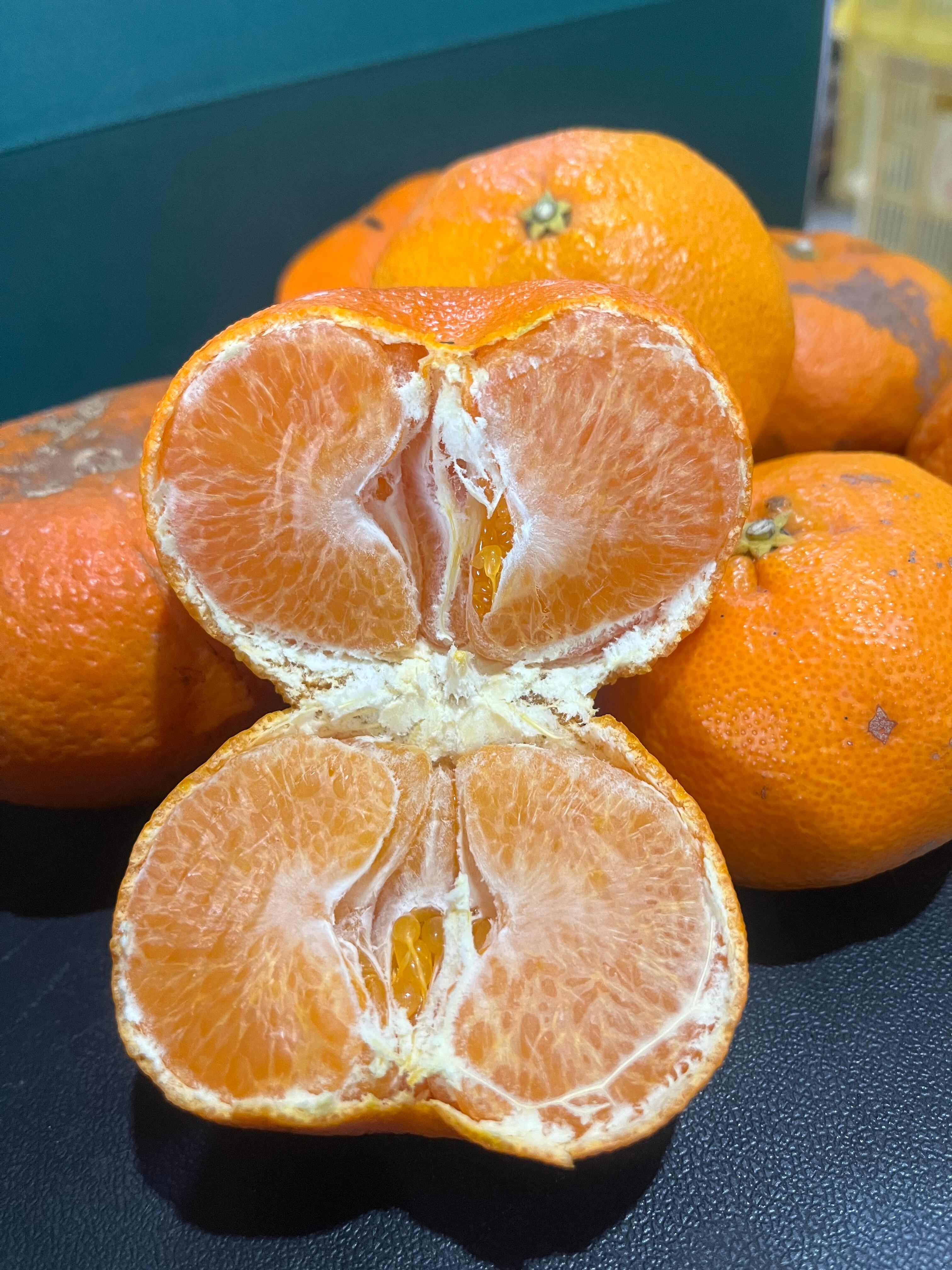 日焼けによる色むらや、表面に傷があるため正規品にはなりませんが、中身の甘さ・ジューシーさは変わりません。