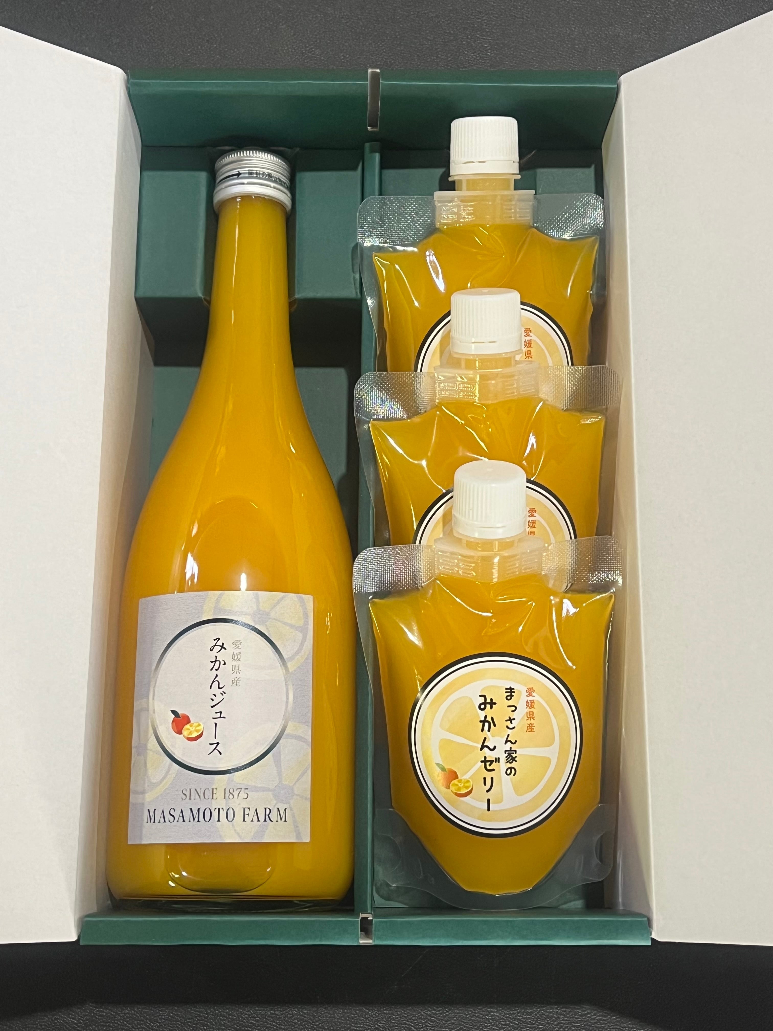 太陽をたっぷり浴びて育ったみかんを使用した、100%ストレートジュースとなめらか食感ゼリーの贅沢セットです。